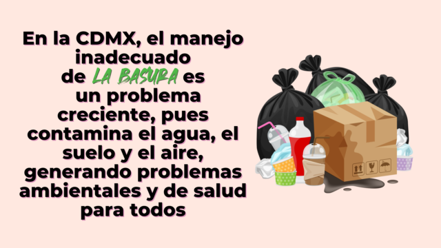 En la Ciudad de México, el manejo inadecuado de la basura es un problema creciente, exacerbado por el aumento de la población y los patrones de consumo. La basura contamina el agua, el suelo y el aire, generando problemas ambientales y de salud para todos.